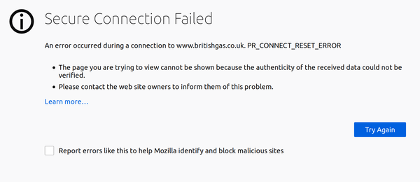 After switching energy supplier, I discovered I couldn't connect to their website.